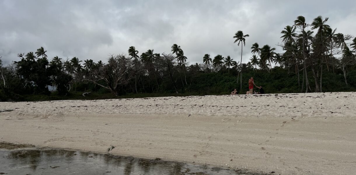Na letiště v Nuku’alofa jsme přistáli o půl druhé v noci. Čekala nás asi čtvrtá letištní kontrola a mohli jsme vyrazit. Před letištěm nás přivítal majitel hostelu, ve kterém jsme spali. Jmenoval se Toni, neměl zuby a bylo mu asi 100 let. Poslal nás pro balenou vodu, protože v místních kohoutcích nekoluje pitná voda a vzal nás k bankomatu, abychom mu měli jak zaplatit. Platit kartou na Tonze totiž nejde úplně dobře. Vzhledem k Toniho věku se nám výrazně ulevilo, když auto řídila podstatně mladší paní. Zpátky se nám přitížilo, když jsme zjistili, že společně s paní je v autě i její dvouleté dítě. To cestu strávilo koukáním do telefonu u Toniho na klíně. Asi i s ohledem na nepřivázané dítě v autě, jela paní celou cestu průměrnou rychlostí 30 kilometrů v hodině, takže nám 20 km cesty trvalo skoro hodinu.