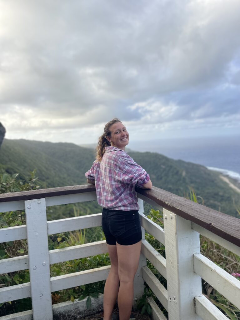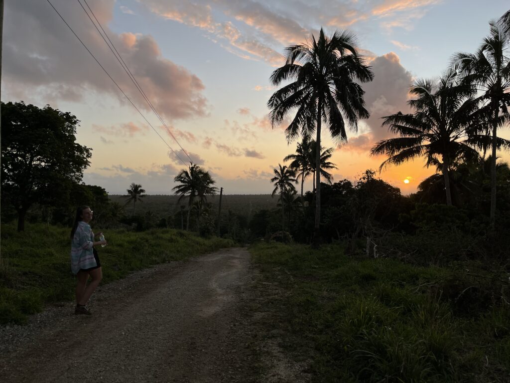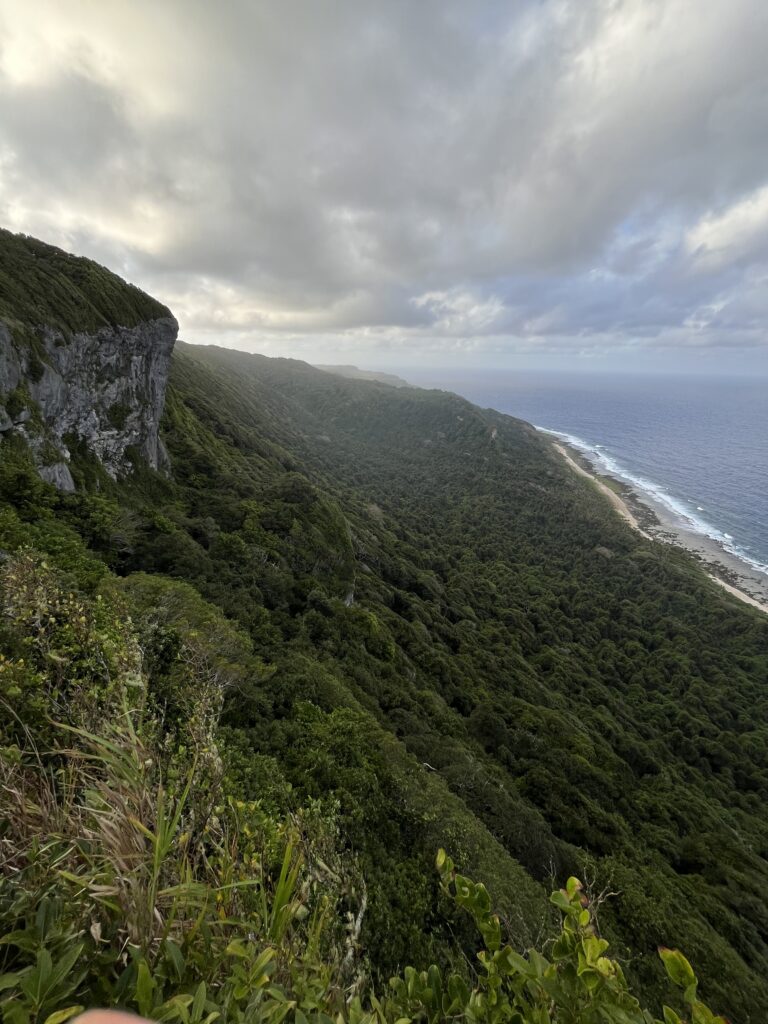 První část cesty vedla po hlavní silnici, tam se toho nedalo moc pokazit. Když jsme odbočili doleva, teď už na vedlejší cestu, po pár kilometrech se cesta začala zužovat, potom mizet a nakonec se ztratila úplně. Čím víc zarostlá cesta byla, tím míň lidí bylo ochotných pokračovat dál, až jsme nakonec zbyly jenom dvě. Naše vytrvalost přinesla své ovoce a asi padesát metrů potom, co to všichni ostatní vzdali, se před námi cesta znovu objevila a my mohly vesele pokračovat dál. Došly jsme až na vyhlídku a padla nám brada. Rozprostřel se před námi tak krásný výhled, že mi to vehnalo slzy do očí. Skála, les, palmy, pláž, moře a nad tím vším letěl modrý papoušek.