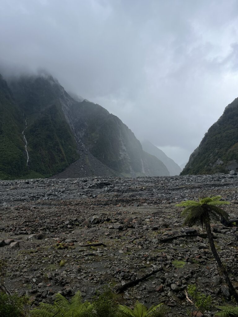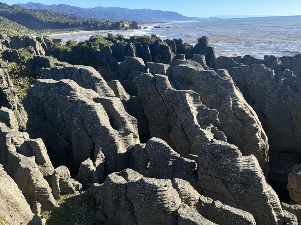 Zní to, jako bych si toho nevážila. Vážím, a hodně, ale občas je to cestování fakt náročné, únavné a může ho být až moc. Až tak moc, že hlava ani tělo už nechtějí a nemohou přijímat víc zážitků, informací a vjemů. Proto mám celé West Coast tak trochu v mlze. Nejenže tam mlha opravdu byla, ale taky jsem nedokázala vstřebat všechno, co jsme zažily. Naprostého stropu jsem dosáhla u Pancake Rocks, útesů, které vypadají jako věže z lívanců. Moře a vítr na skály působili společnými silami tak dlouho, až vytvořili tyto neobvyklé tvary. Já jsem ale tohle milosti nedokázala ocenit. Nasadila jsem si tenisky, vyběhla úplně opačným směrem a jediné, co mě zajímalo bylo vyhnout se blátu a na kopci najít své plíce. Přesně to jsem v tu chvíli potřebovala, nemít žádné velké vjemy. Nakonec z tohoto běhu mám jeden z nejlepších zážitků z celého West Coast. A to jsme viděly ledovce, krásná jezera, procházely se deštným pralesem nebo se přetahovaly s Wekou o deku.