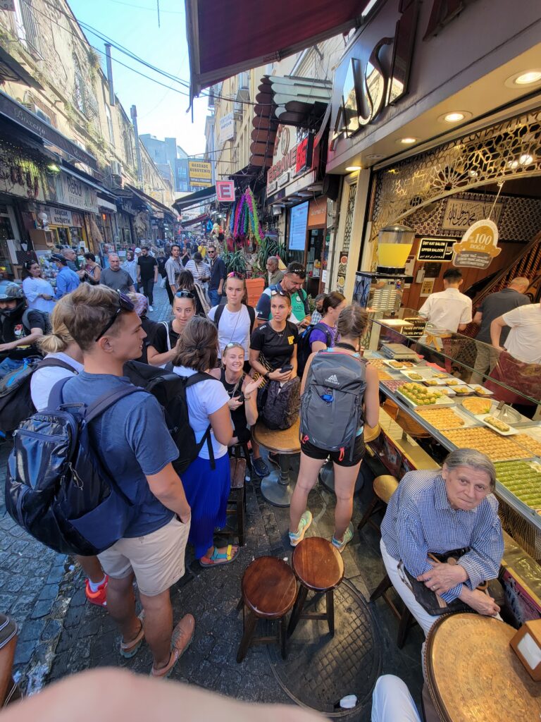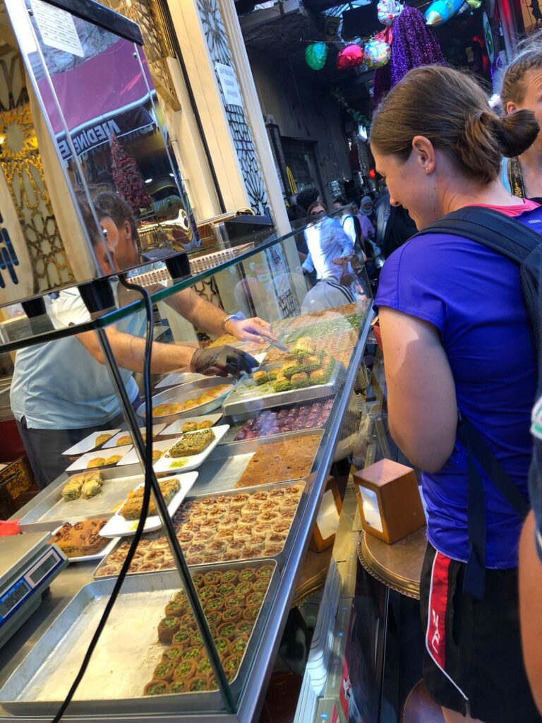 - Na trzích se točíme v kruzích. Pořád počítáme hlavičky, jestli někdo nezmizel. Vlastně jediná světlá chvilka této části výletu je, když nás Anička vezme na baklavu.