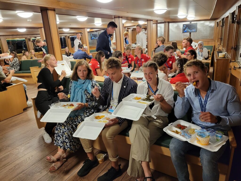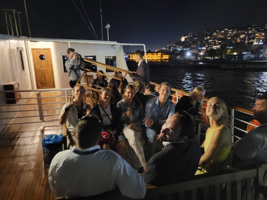 - Na kolej přijíždíme v 18:01 – ve chvíli, kdy máme odjíždět na ukončovací večeři na trajektu. Musíme se ale ještě umýt, převléknout a udělat ze sebe zase lidi. Daří se nám to asi za 20 minut. Nakonec stejně odjíždíme až v 19:00. O hodinu později než Turci plánovali.