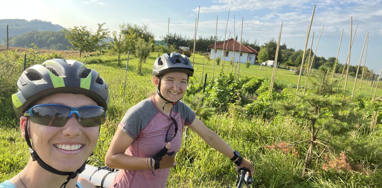 Slovinské kopce si s námi hrají. 14% nahoru, 15% dolů, 18% nahoru, 18% dolů. Ve chvíli, kdy jsem se chtěla začít litovat a nadávat, že mě nebaví jezdit pořád nahoru dolů, jsme potkali další bikepackerku z Česka. Prý jede z Itálie od pátku (dnes je neděle) a snaží se ujet 200 kilometrů denně. Včera jí to teda nevyšlo, protože jela 3 hodiny do kopce. Tak jen zamrkáme, popřejeme jí hodně štěstí a doufáme, že nepojedeme o moc víc než 70.