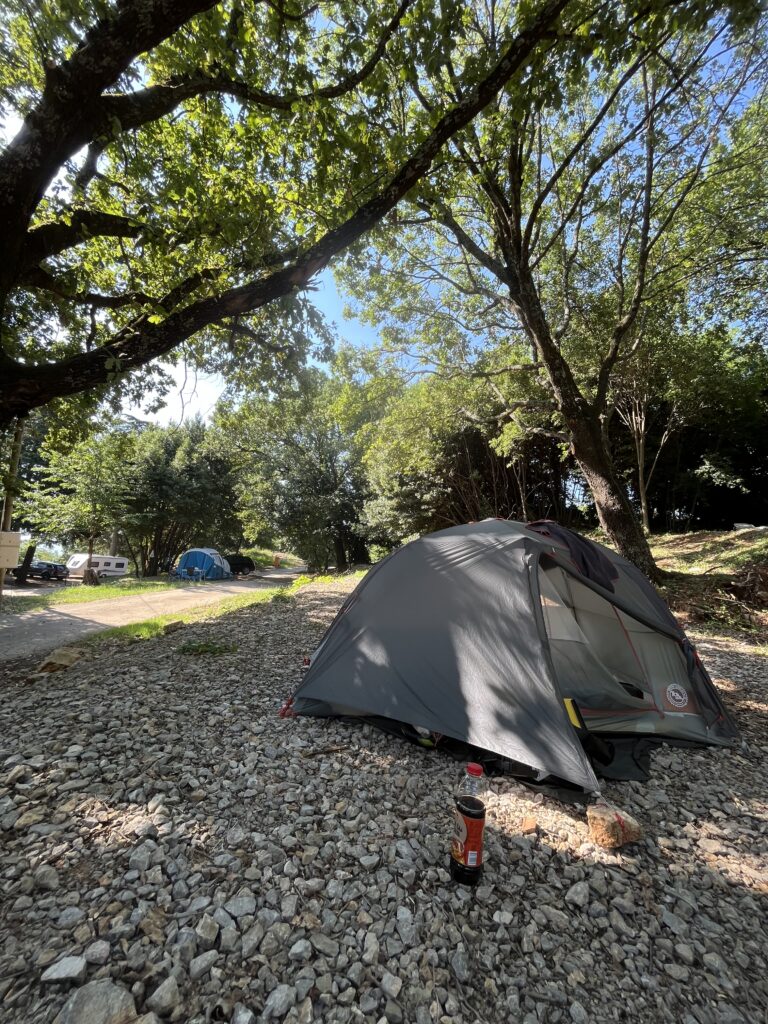 Další noc byla snad ještě krutější než ty předešlé. Vedro, vedro s zase vedro. Boj s ním jsem vzdala o hodinu dříve než jsem chtěla a už o půl osmé jsem se na karimatce vedle stanu protahovala. Po mé vysněné snídani (bagetě s nutelou) už nám nezbývalo než sbalit stan a vyrazit na vlak.