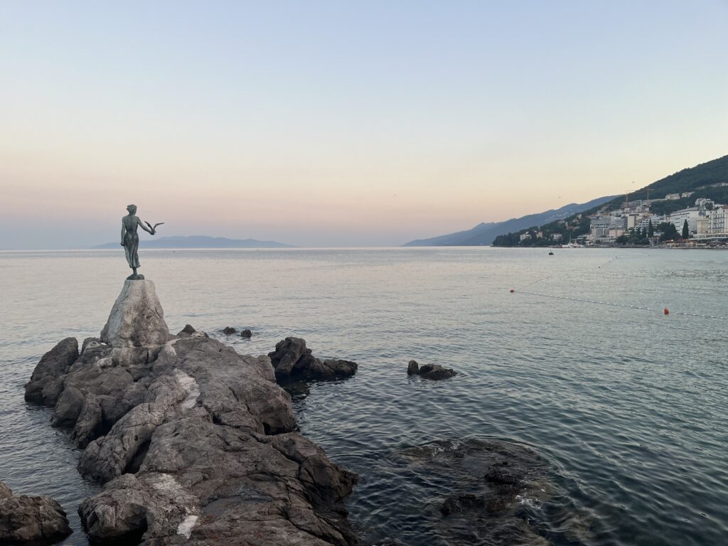 Horko další den nepolevovalo a ani naše únava nebyla o moc menší. Celý den probíhal v podobném duchu jako ten předešlý. Ultradlouhá snídaně, přesun na pláž, moře, šlofík… Cestou z pláže jsme si dopřály zmrzlinu a na cestu do města jsme si vzaly kola. Díky tomu jsme se mohly podívat po krásách Opatijy. V deset jsme už ale byly zase tak unavené, že jsme sotva zvládly sprchu a už jsme spaly.