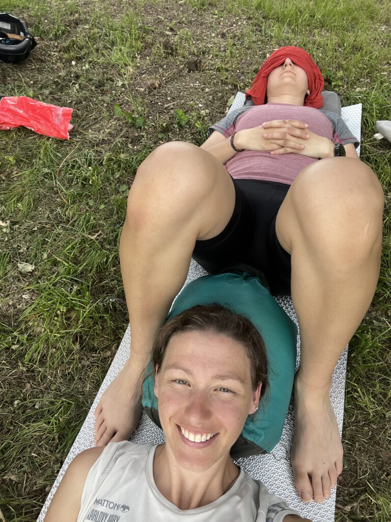 Chuť jsme si zlepšily jen o pár kilometrů dál v parku, kde jsme si konečně našly klidné místo ve stínu a nakonec si i zdřímly, abychom dospaly náročnou noc.