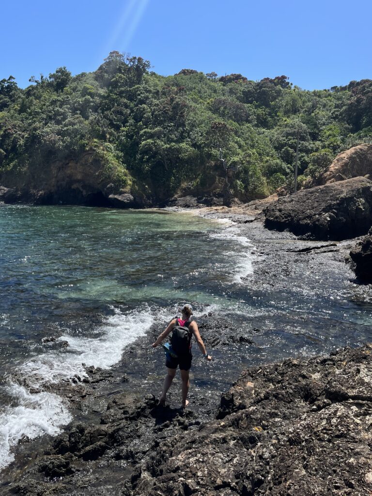 Výlet na maják ve městě Tutukaka, ke kterému jsme se musely přebrodit mořem, protože jsme tam šly zrovna ve chvíli největšího přílivu.