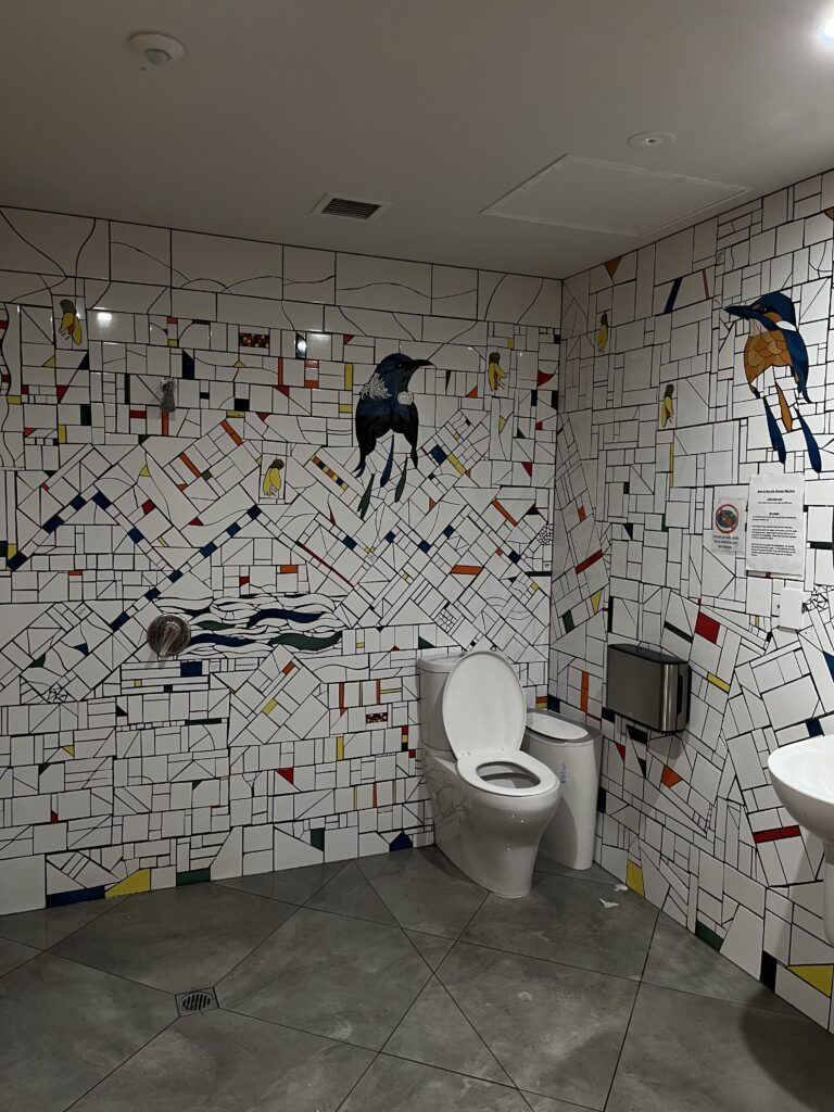 První dny jsme se na spaní držely míst, která byla vyhrazená pro self-cointained vozidla (tedy soběstačné vozy, ve kterých se dá bydlet). Po třech nocích nás to ale omrzelo a začaly jsme si hledat bydlení někde v přírodě, s krásným výhledem. A třeba poslední veřejné místo bylo tak skvělé, že bych se tam klidně i vrátila. Bylo to u veřejných záchodů podle návrhu Friedensreicha Hundertwassera. Na záchodech byla i sprcha (za 3$ dokonce teplá), vedle krásná knihovna s wifi, naproti obchůdek s kávou (plný ultra divných lidí, ale to pomineme). Ale teď to nejlepší. To místo se jmenovalo Kawakawa. A víte jak chutná ranní káva v Kawakawa? Hrozně, protože jsem si do ní nalila zkyslé mléko.