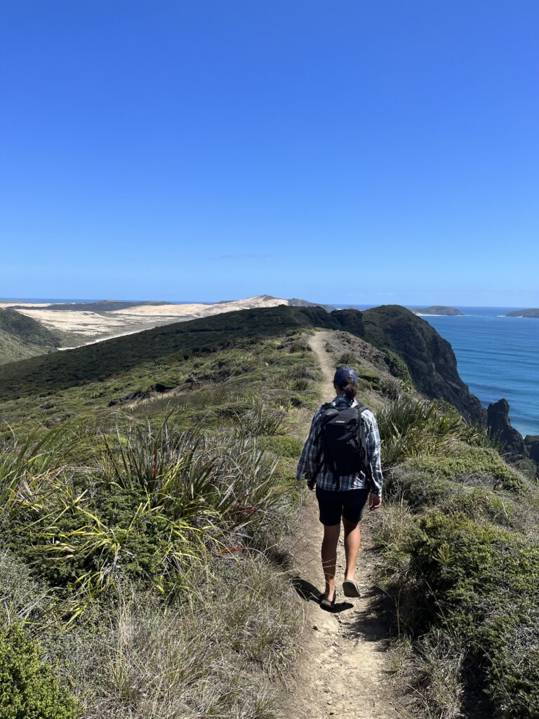 Další noci jsme už spaly na místech, která jsme si vybraly samy. Jednu noc kousek od městečka Kerikeri, druhou na poloostrově Karikari. A pak už to bylo jen kousek do naší “cílové” stanice. Cílové v uvozovkách, protože to byl opravdu jen dílčí cíl. Jakmile jsme přijely na Cape Reinga (a prošly se na nejsevernější bod Nového Zélandu) otočily jsme se a jely stejnou cestou 100 kilometrů zase zpátky na jih, protože tam vede jen jedna jediná cesta.