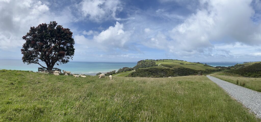 Naše Vánoce začaly 23.12. v Shakespear Regional Parku. Shakespear Regional Park je přírodní rezervace, plná nejrůznějších rostlin, dobytka a především ptáků. Jedním z nich je i pták kiwi, ale ten se ve volné přírodě hledá vážně těžko. Shakespear Regional Park je taková veliká Stromovka (pro pražské), případně Bjornsonův sad (pro brněnské), se spoustou grilů, stolečků, záchodů, jenže u pláže. Místní rodiny sem jezdí grilovat a oslavovat tak Vánoce. Grilování v parku nebo na pláži je totiž pro Novozélanďany typickým prvkem Vánoc. Dokonce místo štědrovečerní večeře jdou grilovat na pláž.