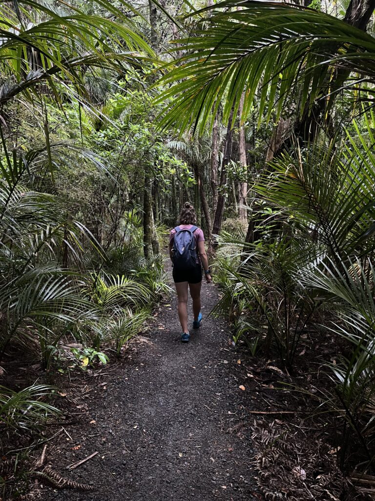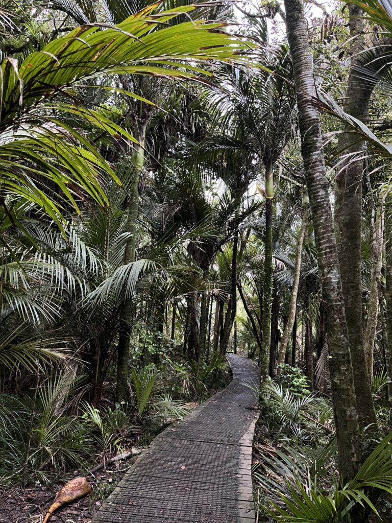 Na boží hod vánoční jsme, opět pro Evropana netradičně, vyrazily do pralesa. Podle mapy to byl spíš takový park na kraji města, ale uvnitř byl opravdu pořádný prales. Bylo tam asi milion druhů rostlin, včetně stromů Kauri, které jsme viděly úplně poprvé v životě. Kvůli stromům Kauri je potřeba dodržovat i specifické hygienické předpisy. Při vstupu i výstupu z parku jsme si musely pořádně vyčistit a vydezinfikovat podrážky svých bot. Stálo to ale za to. Něco takového jsme ještě v životě neviděly.
