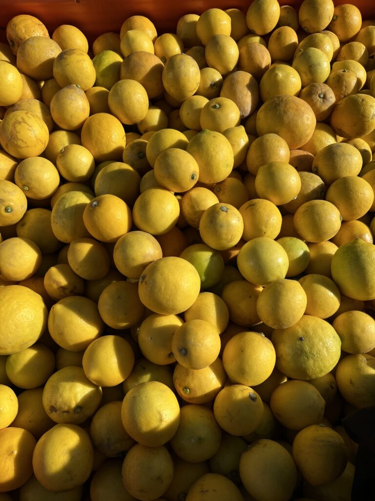 První dva dny jsme sbírali citrony. Moc jich nebylo a ještě ke všemu jsme museli hodně vybírat správnou barvu. Mohli jsme totiž sbírat jen 100% žluté citrony. Když jsme posbírali celý sad, šéf nám řekl, ať uděláme čelem vzad a jdeme to posbírat znovu. Nebylo to ale tím, že bychom byli tak neschopní a nepoznali žluté citrony. Teď jsme mohli sbírat všechno, co bylo aspoň z 25% žluté. Tentokrát jsme naopak celožluté citrony museli házet na zem. Citrony totiž jdou po posbírání do plynu, kde dozrávají. Jenže celožluté citrony už zralé jsou, takže by v plynu explodovaly. Proto jsme je museli sbírat zvlášť.