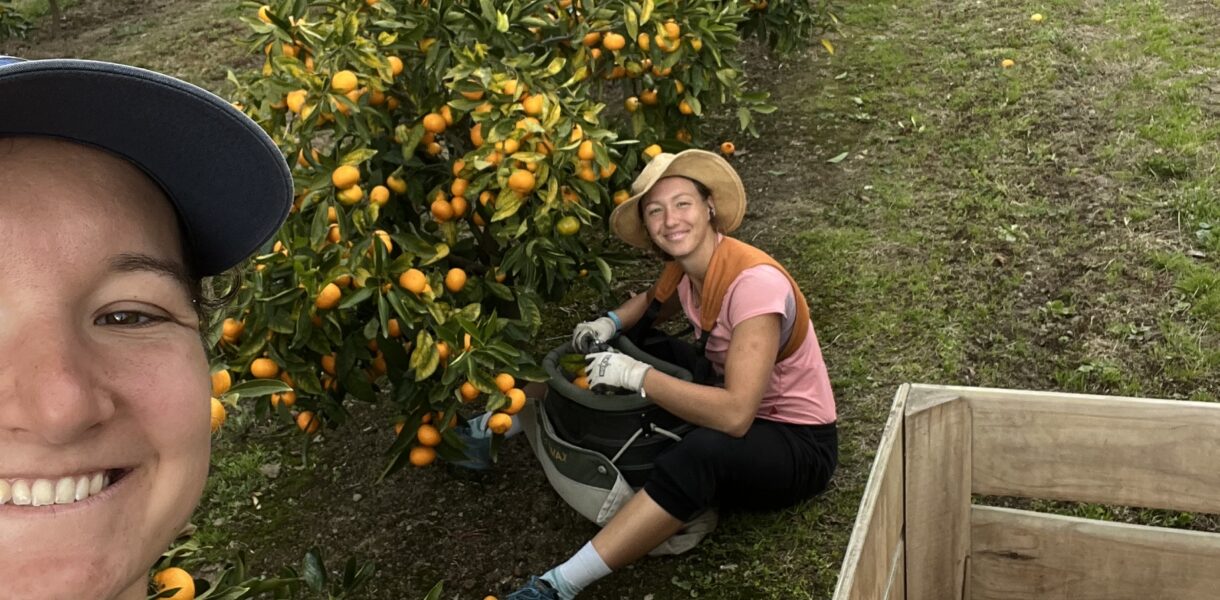 Tahle paní byla velmi vybíravá. Mohli jsme sbírat jen mandarinky, které měly obvod větší než 55 milimetrů. Dělali jsme vážně co jsme mohli, natahovali se úplně všude, obraceli každou mandarinku a měřili jak je velká. Paní za námi stejně vždycky aspoň tři zapomenuté mandarinky, pro které jsme se museli vracet, našla. Po třech dnech precizní práce jsme to ale pochopili. Vždyť ona za každou mandarinkou vidí dolar, který za ni dostane. Čím víc mandarinek necháme na stromech, tím víc peněz jí tam zůstane viset. A tak je jasný, že po nás chce, abychom je posbírali vážně všechny.