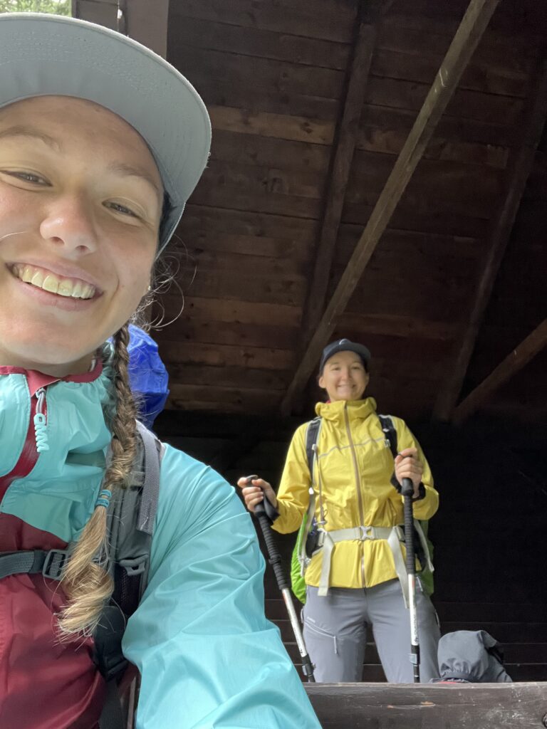 Pak už jsme mířily na nejvyšší bod dnešního dne – Vysokou (1024 m n. m.). Poměrně přiléhavý název vzhledem ke kopci, který na ni vedl. Trochu čára přes rozpočet byla, že na jejím vrcholu stojí přístřešek, ve kterém jsme měly v plánu spát, ale bylo teprve 5 odpoledne (a zima jako blázen). Kdybychom tam čekaly až do večera, tak nejspíš utuhneme (umrznout totiž nemůžeme, když nemrzne). Vyrazily jsme dál s nejistou vyhlídkou dalšího spaní. Čeká nás ještě jeden přístřešek za 3 kilometry a další až za 15.