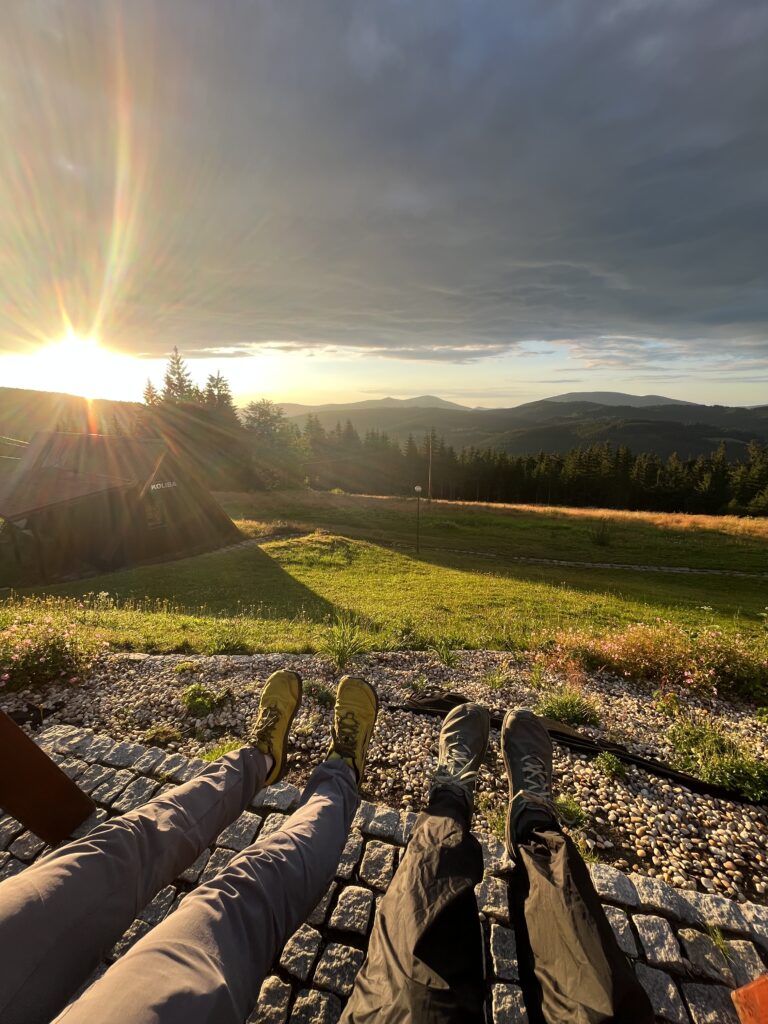 Možná už jenom západ slunce a výhled na Lysou horu, které jsme sledovaly z houpačky vedle hotelu.