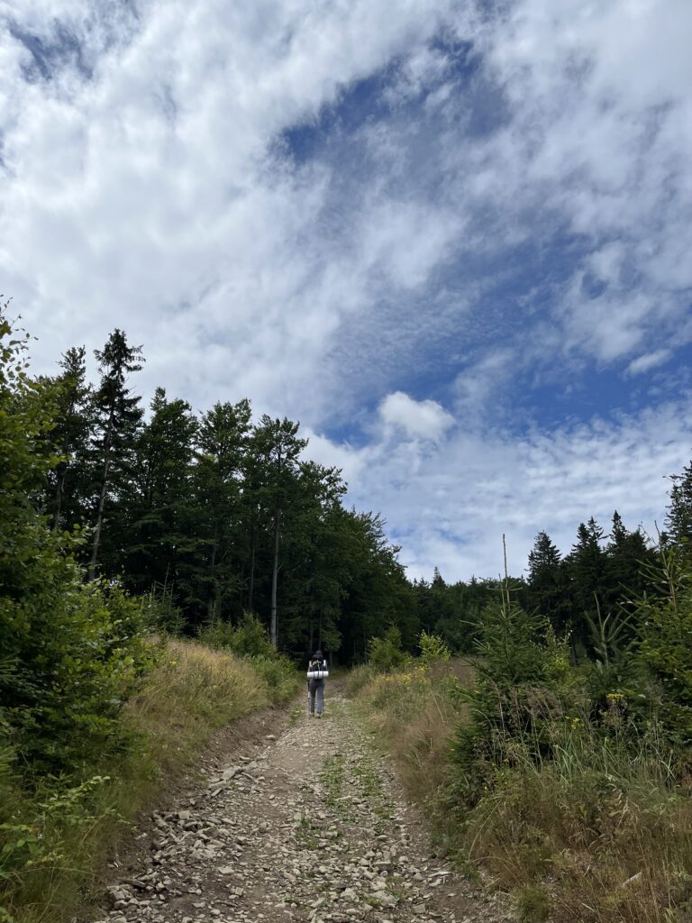 Pak už jsme vyrazily do posledního dne naší trasy. Cíl byl jasný, dojít do Velkých Karlovic na vlak. Stačilo sejít jeden kopec a byly jsme na Slovenských hranicích. Tam jsme se už napojily na Stezku Českem a řeknu vám, tu chcete projít. Tak krásnou trasu jsme už dlouho nepotkaly. Výhledů spousta a lesy nádherné.