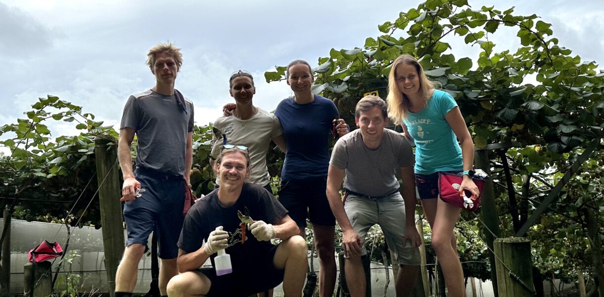 Tento týden je náš poslední týden v kiwi sadu. Respektive jak dlouho tu zůstaneme záleží na tom, jak budeme rychlí. Čím rychleji práci uděláme, tím dřív budeme bez práce (doslova). Během posledního týdne naše řady značně prořídly a aktuálně jsme tu tři pracanti (z původních sedmi). Takže nám jde práce od ruky podstatně pomaleji. To by ale mohlo znamenat, že nám to bude trvat déle, než práci doděláme.