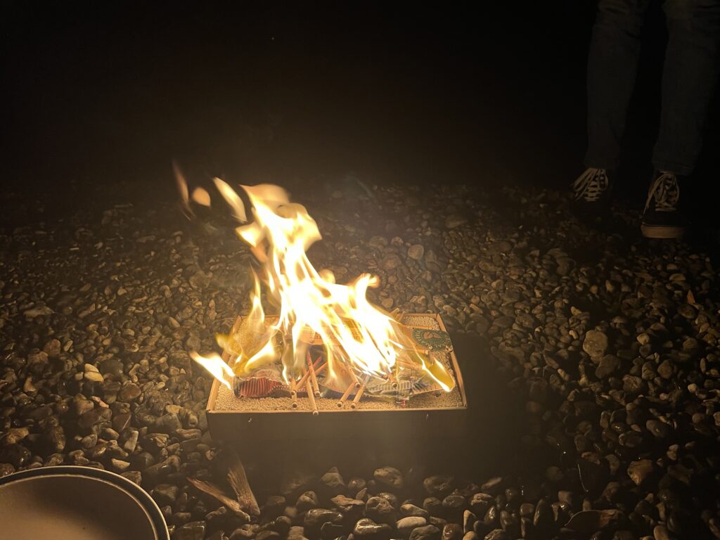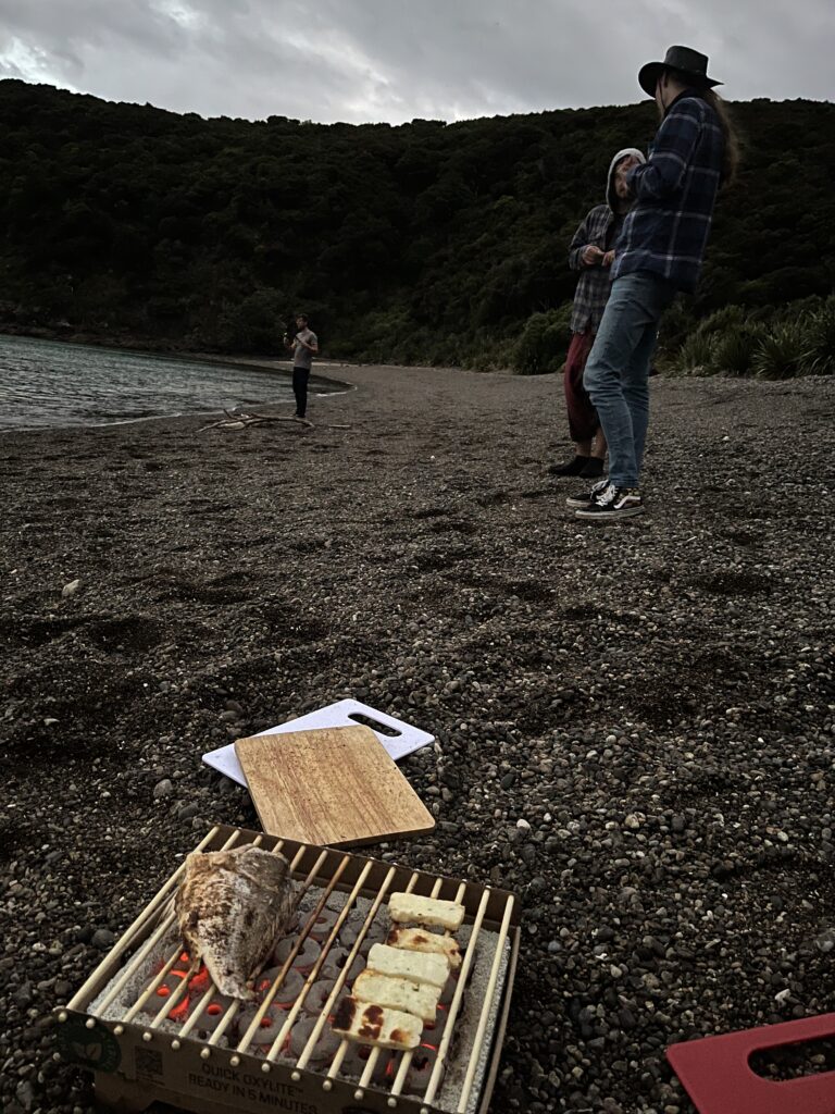 První z nich bylo grilování. Respektive pečení námi ulovené ryby na papírovém grilu (já jsem měla sýr, na rybu si po Islandu stále netroufnu). Celé to vypadalo tak, že jsme v pátek po práci vyrazili na pláž. Kluci vybaveni rybářskými pruty a malou papírovou krabičku, my sýrem a kempingovými židličkami. Na pláži kluci nahodili a čekali jsme. Jeden prut nebyl úplně funkční, takže za pár chvil Honza stál po kolena ve vodě a lovil svůj háček (místo toho, aby háček lovil ryby). Druhý prut byl plně funkční. Po dlouhé chvíli čekání na první rybu, Petr zkusil použít svoji oblíbenou taktiku – nahodím a někomu prut předám. Zafungovala okamžitě. Jen Zuzce podal prut, už tahala rybu z vody. Tu pak kluci vykuchali a hodili na gril. Teda… na takovou papírovou krabičku s bambusovýma tyčkama místo roštu. Kupodivu žádná část tohoto grilu neshořela a my si mohli pochutnat na výborné večeři. Celý gril jsme pak spálili a vyrazili na kutě.