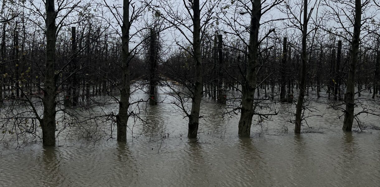 Jinak než v gumákách nemá cenu opouštět auto. Jen cestou do kuchyně projdeme deseti menšími kalužemi. Cestou do garáže (kam musíme chodit na záchod, protože ten v tiny house to vzdal a přestal odtékat) už jdeme jednou souvislou kaluží, která nám sahá po kotníky. Stromy v okolních sadech stojí v rybnících vody a představa, že v tomhle jdeme do práce je úsměvná.