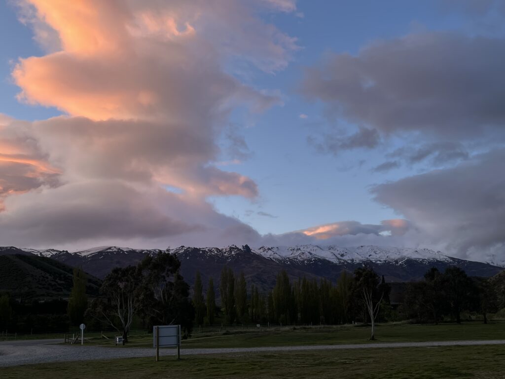 Odpoledne jsem ještě vyrazila do Arrowtownu. Původně jsem si myslela, že se jdu jenom projít centrem, ale po chvíli jsem si uvědomila, že už zase lezu na nějaký kopec a že v tuhle chvíli už bude kratší udělat z toho celý 7kilometrový okruh než se vracet. A tak jsem se večer vrátila do svého oblíbeného “domů” (kempu s výhledem na hory) naprosto vyčerpaná, s obrovským puchýřem na patě a šťastným úsměvem na tváři. Uvařila si kuskus, zabalila se do spacáku a doufala, že do rána nezmrznu. To by totiž znamenalo, že nemůžu jít ráno do práce a to by mi bylo sakra líto.