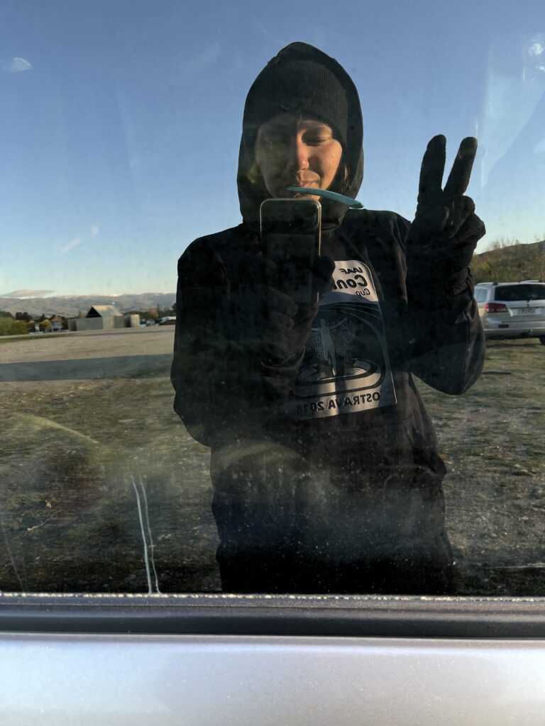 Hned první den v práci byla taková zima, že i místní, kteří pracovali venku přes celou zimu říkali, že jim je vážně zima a já jsem celý den přemýšlela jenom nad tím, jak a kde se večer zahřeju. Druhý den byl ale ještě horší, přes noc totiž mrzlo. Ráno jsem musela škrabat sklo a první dvě hodiny v práci ze mě byla jen chodící kostka ledu. Korunu tomu nasadila noc ze soboty na neděli, kdy mi přes noc auto zasypal sníh. Nakonec jsem během prvního týdne v práci musela 3x škrabat sklo. To je o dvě rána víc než za celou zimu v Gisborne. Nejlepší na tom ale bylo, že mi to absolutně nevadilo. Dokonce jsem se tomu dokázala i smát.
