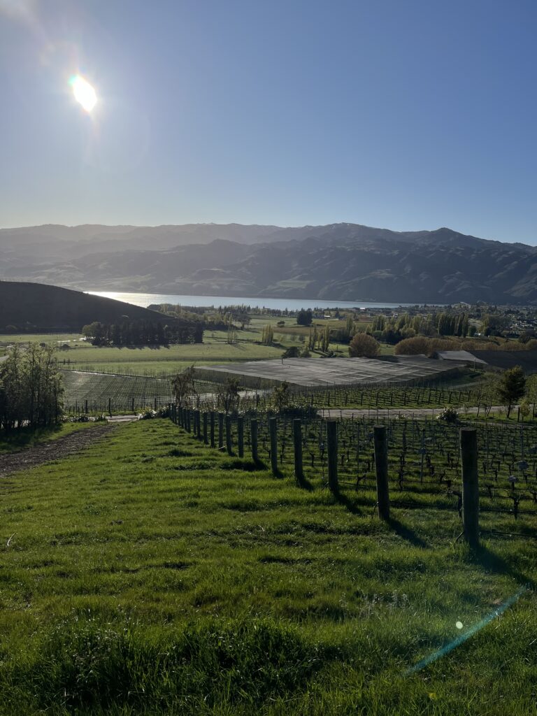 Každý den v práci mi připravil novou výzvu, kterou jsem musela zvládnout. První den mě moje supervizorky Katherine a Katie vzaly na projížďku po všech našich vinicích, mým úkolem bylo se v nich pokusit nějak zorientovat a ideálně si zapamatovat kde která leží a jak se jmenuje. Další dny jsem měřila jak daleko od sebe budeme sázet nové stromky, připravovala háčky kterými povedou dráty pro nové víno, obracela drny trávy kolem stromků, ale většinu času jsem si užívala krásné výhledy a skvělou atmosféru. Vinice, na které pracuju je uprostřed hor a výhledy odkudkoli jsou vážně dechneroucí. A atmosféra? Asi nikdy jsem nepracovala s víc spokojenými lidmi, na kterých je vidět, jak je jejich práce naplňuje. A přesně takovým pocitem mě zaplavují každý den od rána do večera a já si díky nim užívám úplně jakoukoli činnost, kterou mě pověří. Včetně shoot thinningu, což je vlastně jen redukování počtu pupenů na jednotlivých větvičkách a je to ve výsledku strašná nuda.