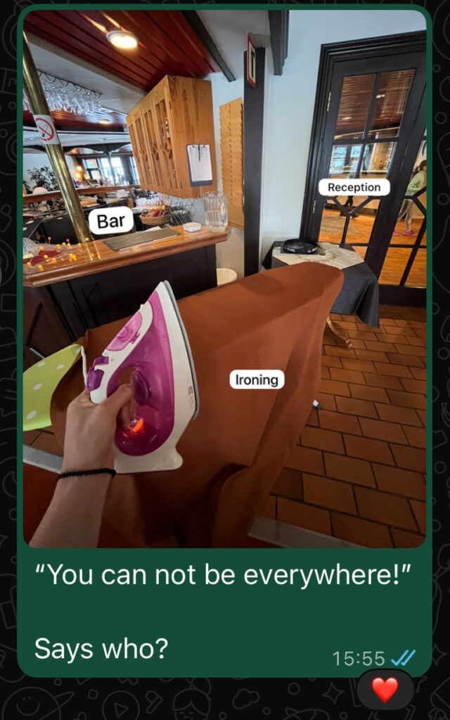 V tomhle ohledu mi největší “službu” udělala Megija. Byla tu jen 19 dní, ale každý moment, který jsem do té doby musela zvládnout sama, jsem během těchto dní mohla sdílet s ní. Každá má nejistota, pochybnost nebo náznak frustrace se rozpustily jen při pohledu na ni. Uvědomila jsem si díky ní, že i když všechno zvládnu sama, ve dvou se to táhne o poznání lépe. A ani po jejím odjezdu jsem neměla moc osamocených dní. V hotelu bylo pořád spoustu hostů. Bylo jich tolik, že jsme pravidelně musely volat o pomoc. V těchto chvílích mi byla největší oporou Ieva, která po své směně v kavárně šla rovnou pomáhat nám do hotelu. Když se hosté střídali, dlouhé dny se mnou uklízela pokoje, povlékala postele a držela moji morálku.