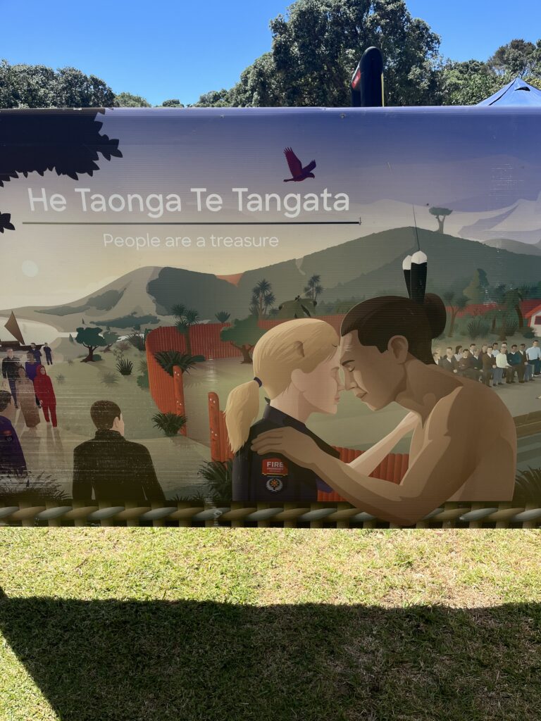 Vzhledem k tomu, že Kerikeri, kde pracujeme je od Waitangi vzdálené asi 20 kilometrů, vyrazily jsme na oslavy i my. Po hodině a půl strávené v zácpě jsme konečně dorazily na místo konání. Moc jsme mezi Maory nezapadaly, bělochů byla na místě značná menšina. Také jsou naše kultury značně odlišné. Například maorské ženy mají často tetování na rtech a bradě, což může být pro Evropana poměrně děsivé. Když ale začali zpívat své písně a smáli se na nás i očima, došlo nám, že jsme všichni úplně stejní lidi z masa a kostí, a odlišují nás opravdu pouze naše zvyky. Také jsme si uvědomily, že o Maorech ani jejich kultuře nic nevíme. Slyšely jsme jen několik ne úplně povzbudivých historek. Rozhodly jsme se proto, že musíme nějakého Maora poznat a proniknout trošku hlouběji do jeho kultury. Jestli se nám to podaří nevím, ale zatím na to máme ještě docela dost času, tak nám držte palce. Třeba už příští vyprávění může být o něm.